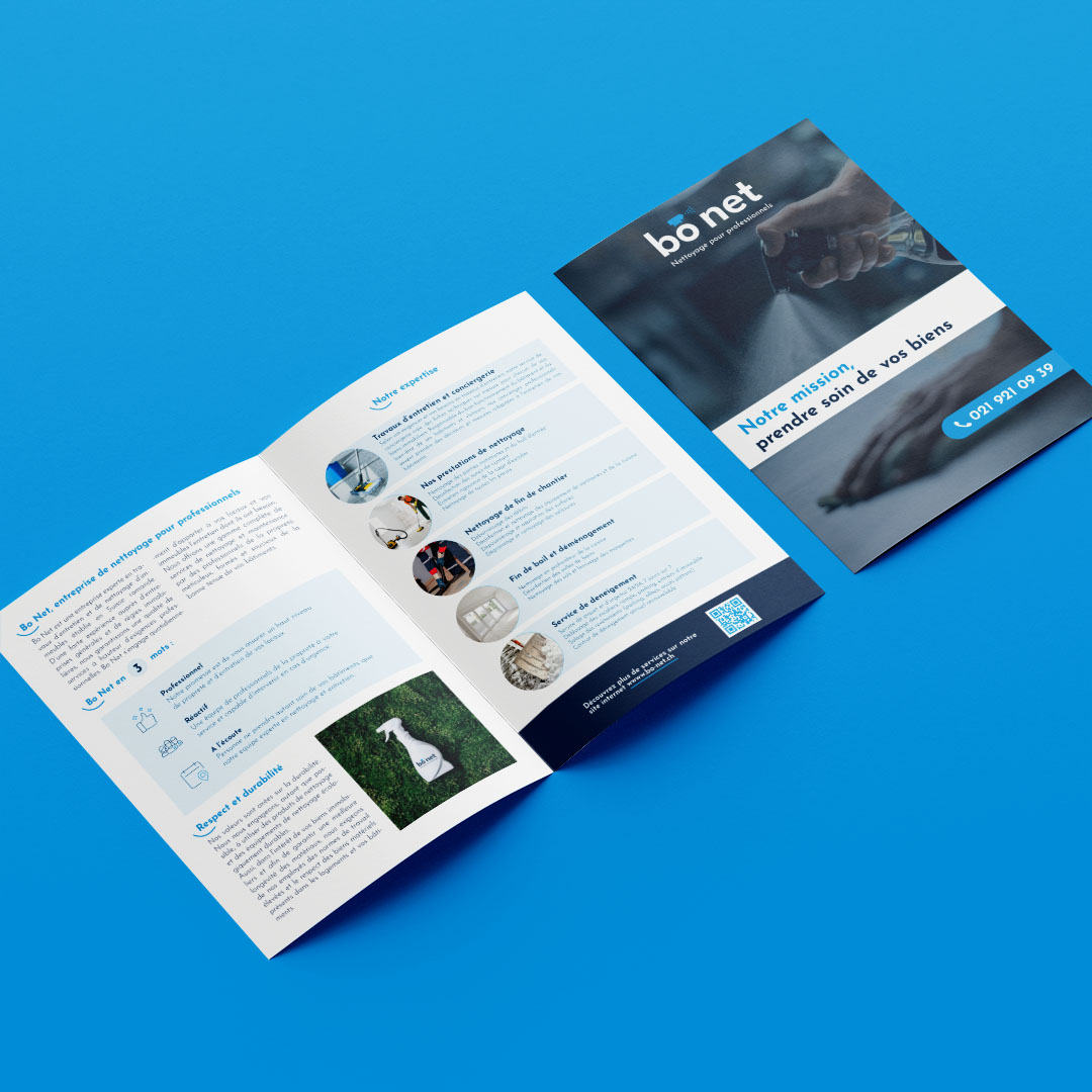 Suite à la création de la société, Bo net avait besoin d'une identité visuelle professionnelle. Cette identité visuelle devait véhiculer une image saine, respectueuse, le sérieux, mais aussi qu'une personne non avertie, puisse reconnaître le secteur d'activité : le nettoyage.