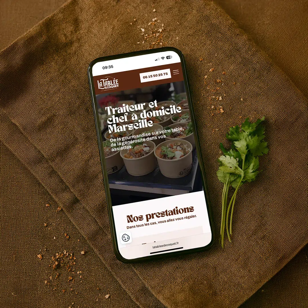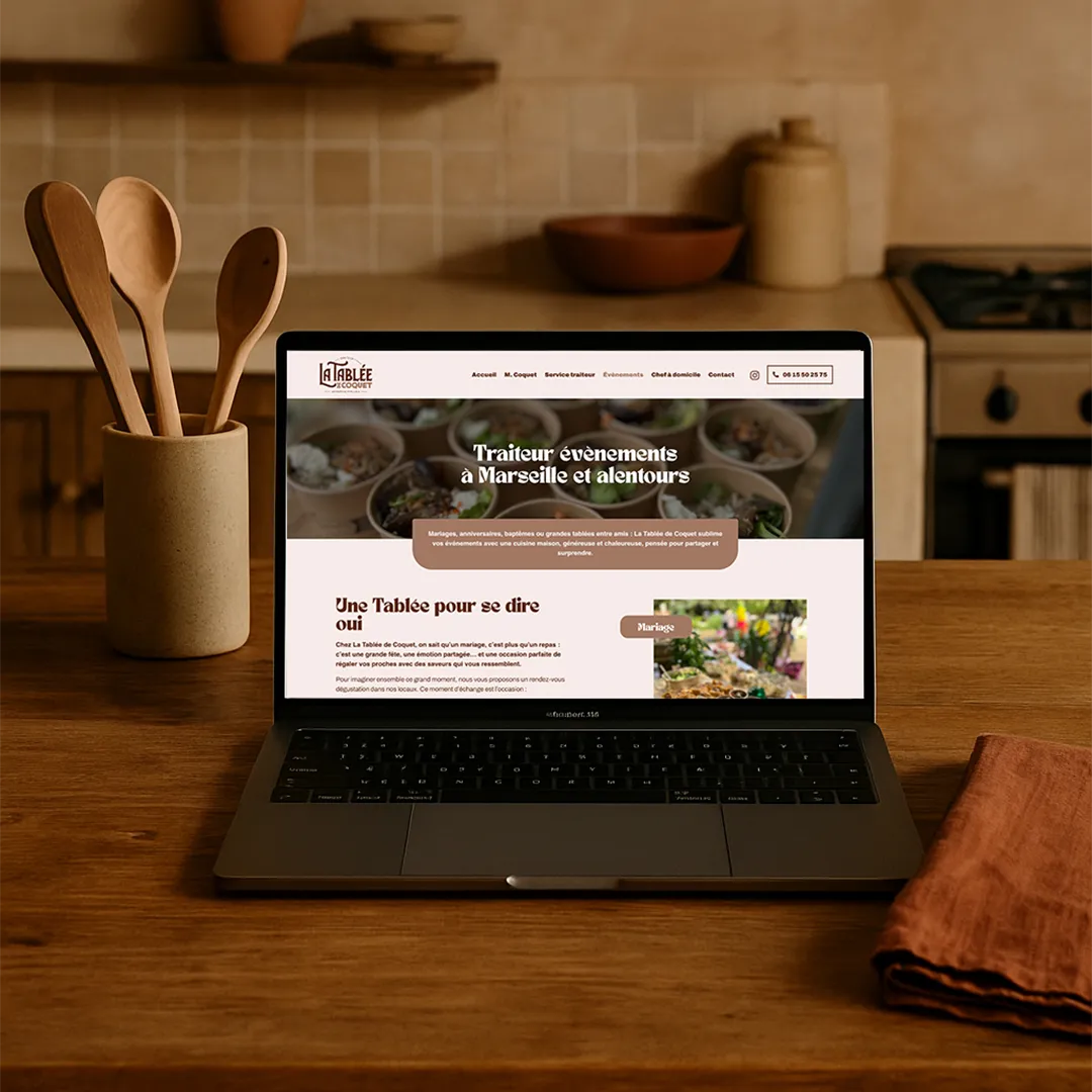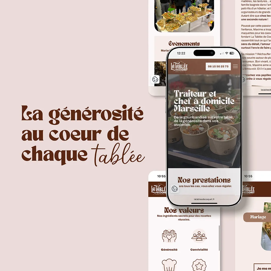 Pour accompagner le développement de La Tablée de Coquet, nous avons imaginé une identité visuelle fidèle à leurs valeurs. Ils souhaitaient un logo chaleureux, familial et authentique, à l’image de leur cuisine.